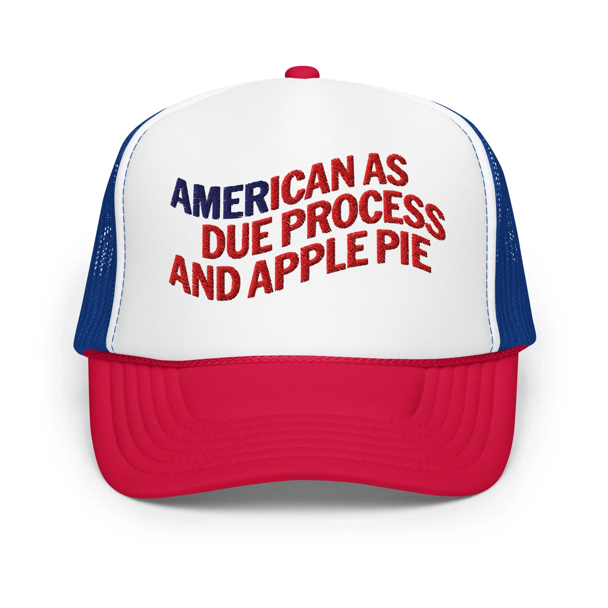 Let's face it, America is embarrassing. But the foundations of what we've been trying to achieve are the right ones: representative democracy, civil rights, and the pursuit of happiness. Celebrate the goals with this patriotic trucker hat, smile at your neighbors, and don't let the man get you down.